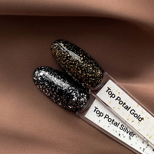 Top Potal Silver – глянцевый топ с маленькими частичками серебряной потали. Топ без липкого слоя, отлично держит глянец на протяжении всего срока носки и защищает покрытие от выгорания. Идеален как для светлых, так и для темных оттенков.
